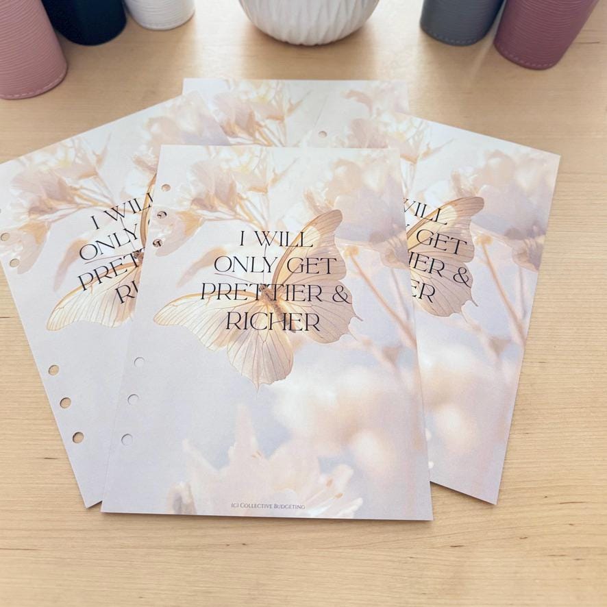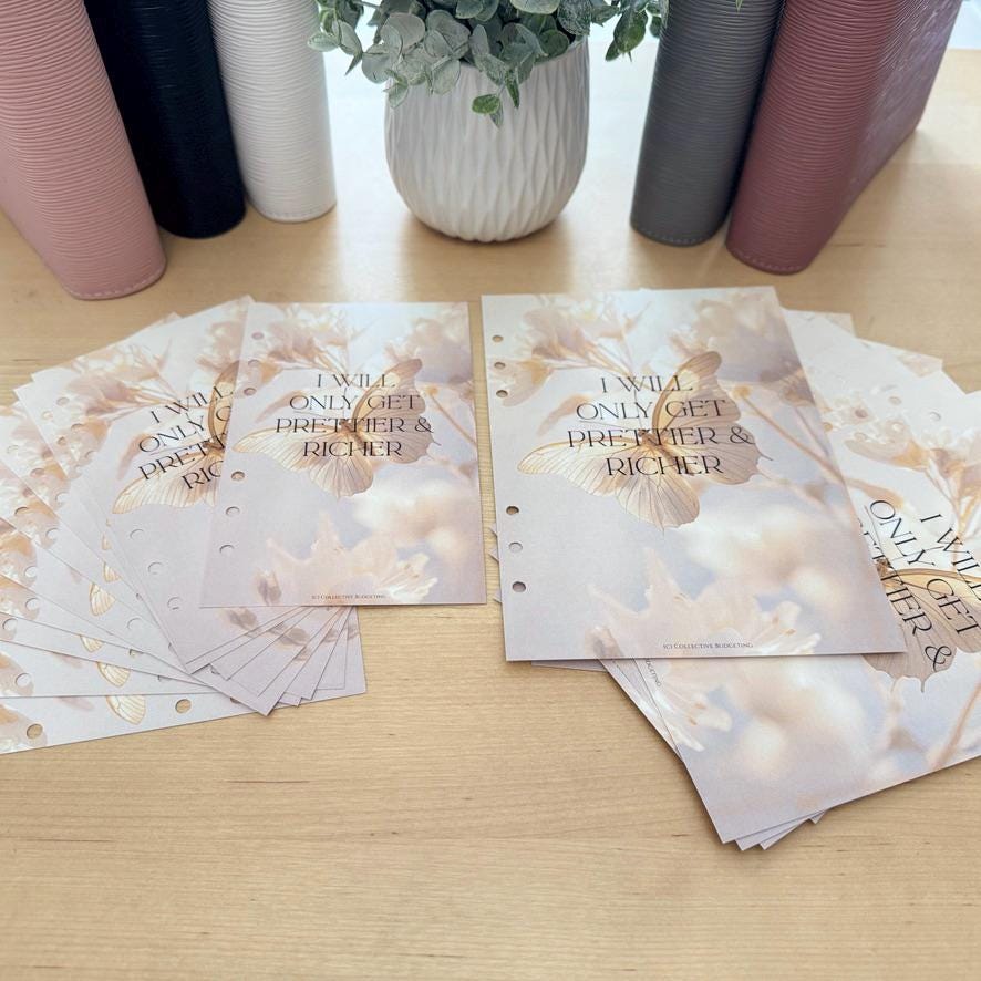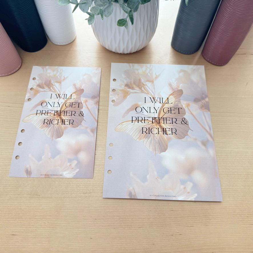 Brighten up your budgeting routine with this A6 and A5 Dashboard Insert featuring beautiful BUTTERFLY EFFECT exclusively from Collective Budgeting! This cheerful and functional insert adds a personal touch to your cash stuffing binder while helping you stay focused on your money goals 🌸✨