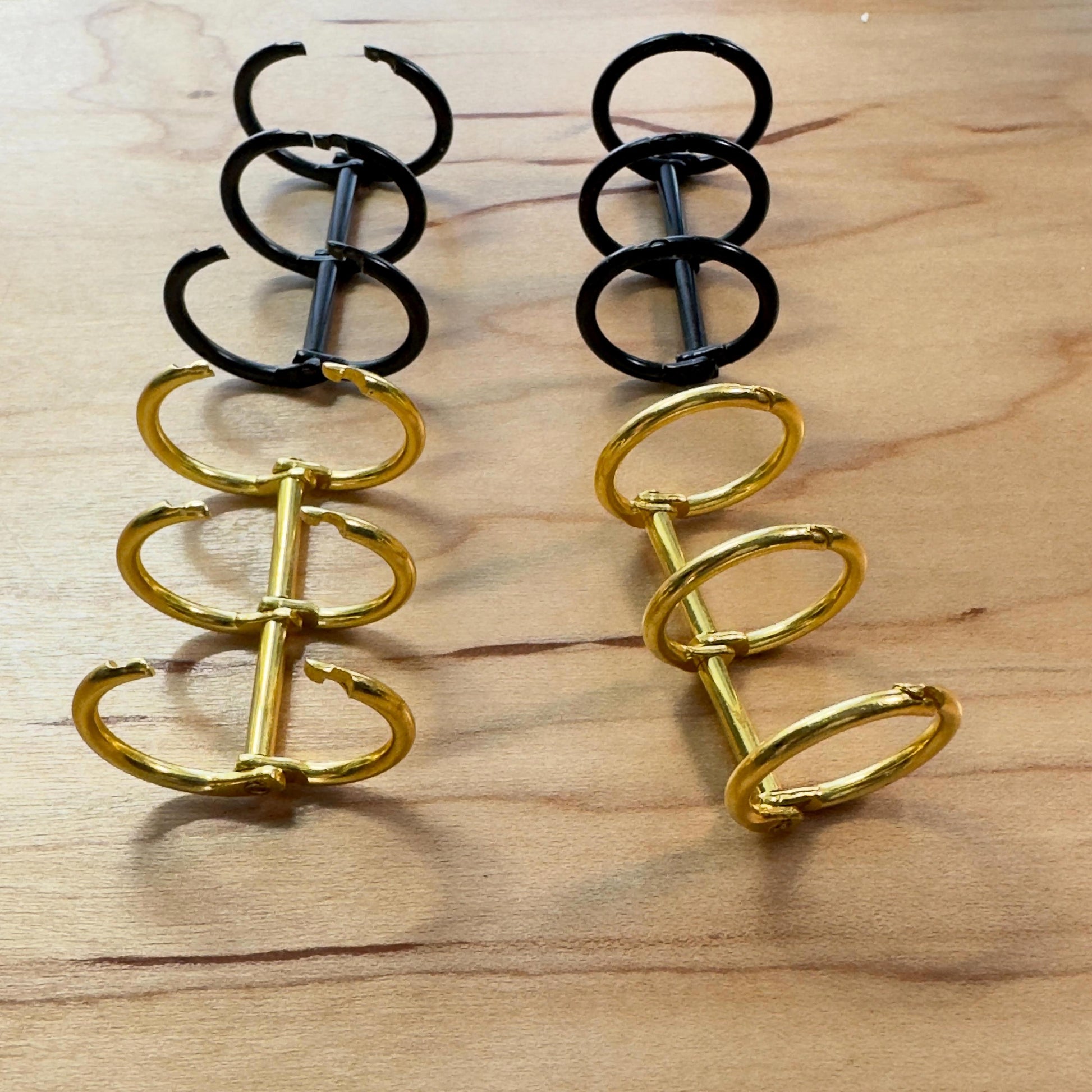 Binder Rings (Sold in Pairs of Two) • Colors: Gold or Black • Includes: (2) rings per set Designed for easy snap-open functionality, these rings pair beautifully with any A5 or A6 binder and coordinate perfectly with our acrylic dashboards for a cohesive look.