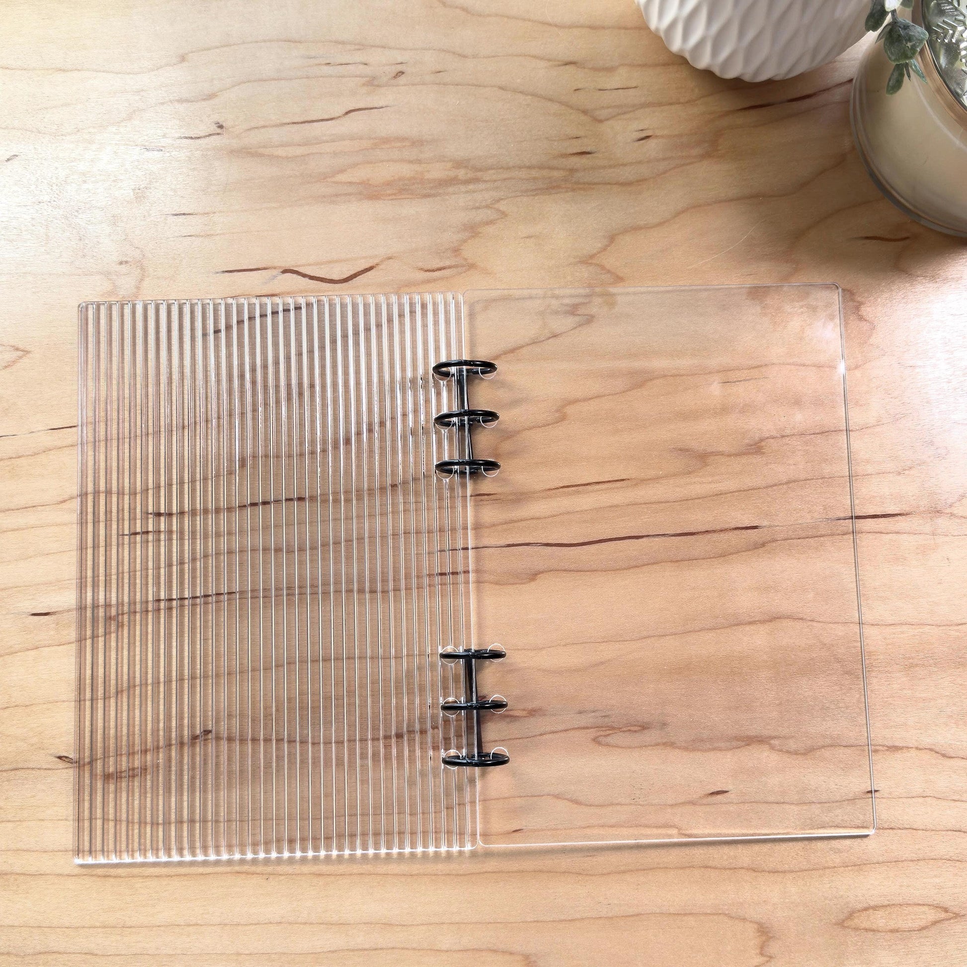 • Ring size is 25mm Made from premium clear fluted acrylic with a luxe ribbed texture, these dashboards are smooth, sturdy, and built to protect your inserts, trackers, and envelopes from daily wear. Perfect as a cover page, divider, or decorative dashboard to add polish to your budgeting routine. 🖤
